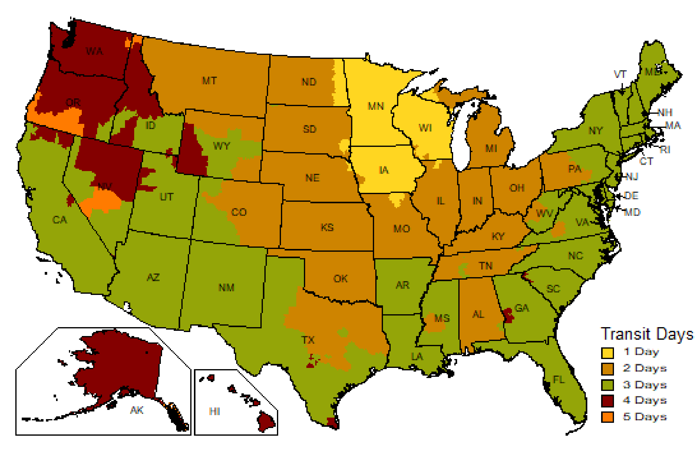 3. Additional transit time may apply to remote areas. Please call for additional information.