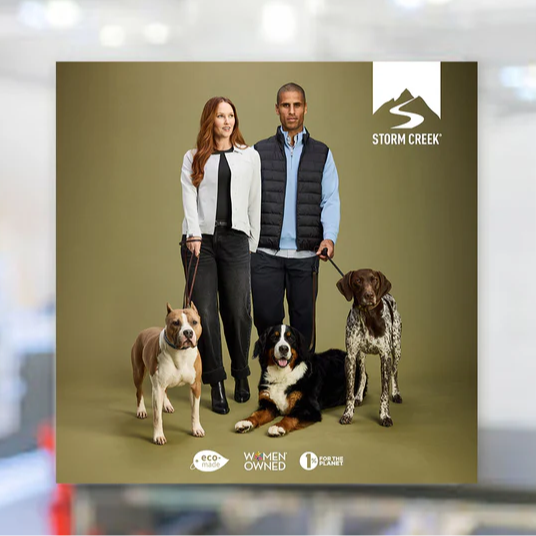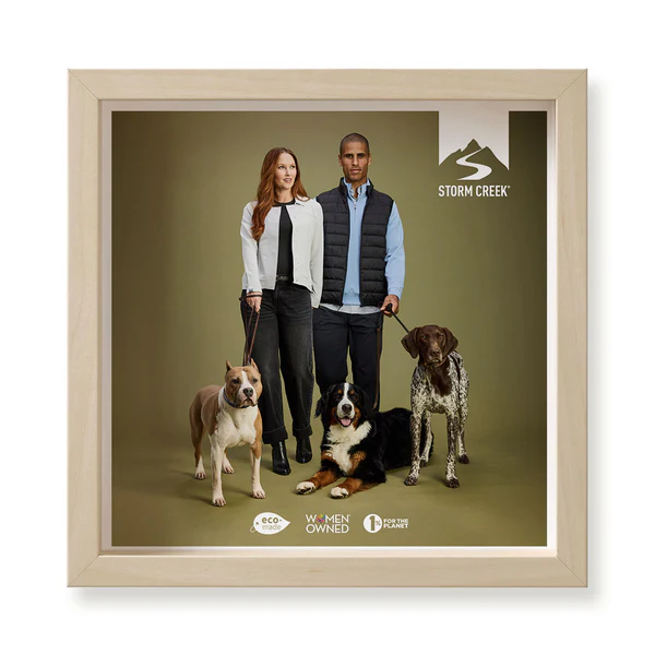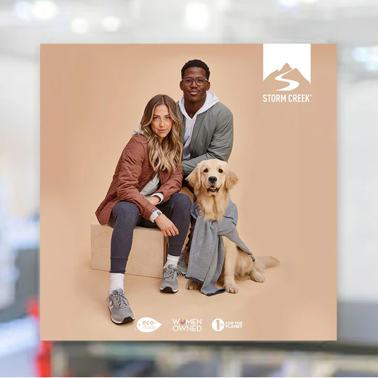 Framed Storm Creek branded displays, window clings, & hangers to spice up your showroom spaces.