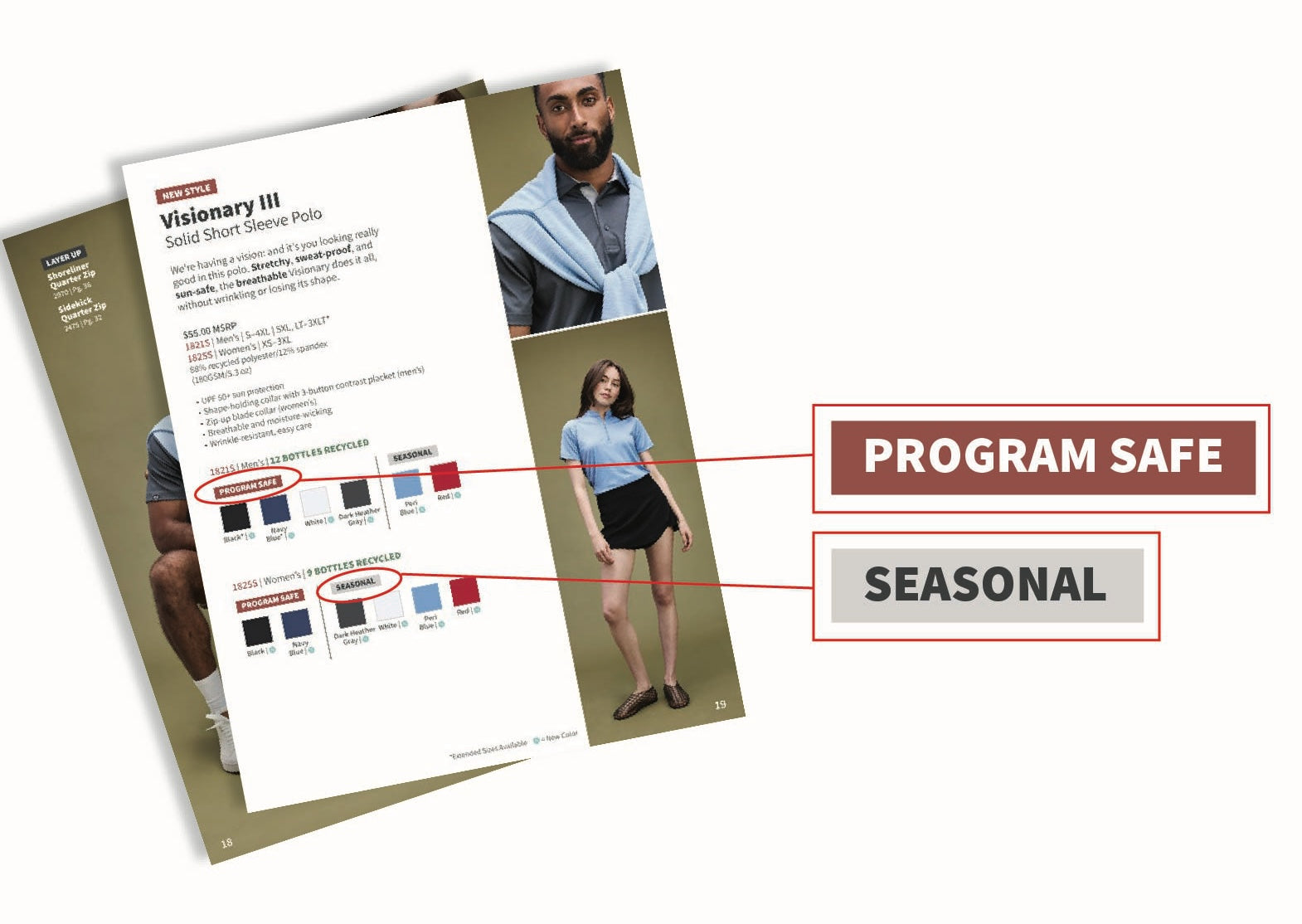 We make it easy to know which colors are program safe. Products labeled "Program Safe" in our Essential Catalog and on each product page are backed with higher stock commitment and fewer changes.